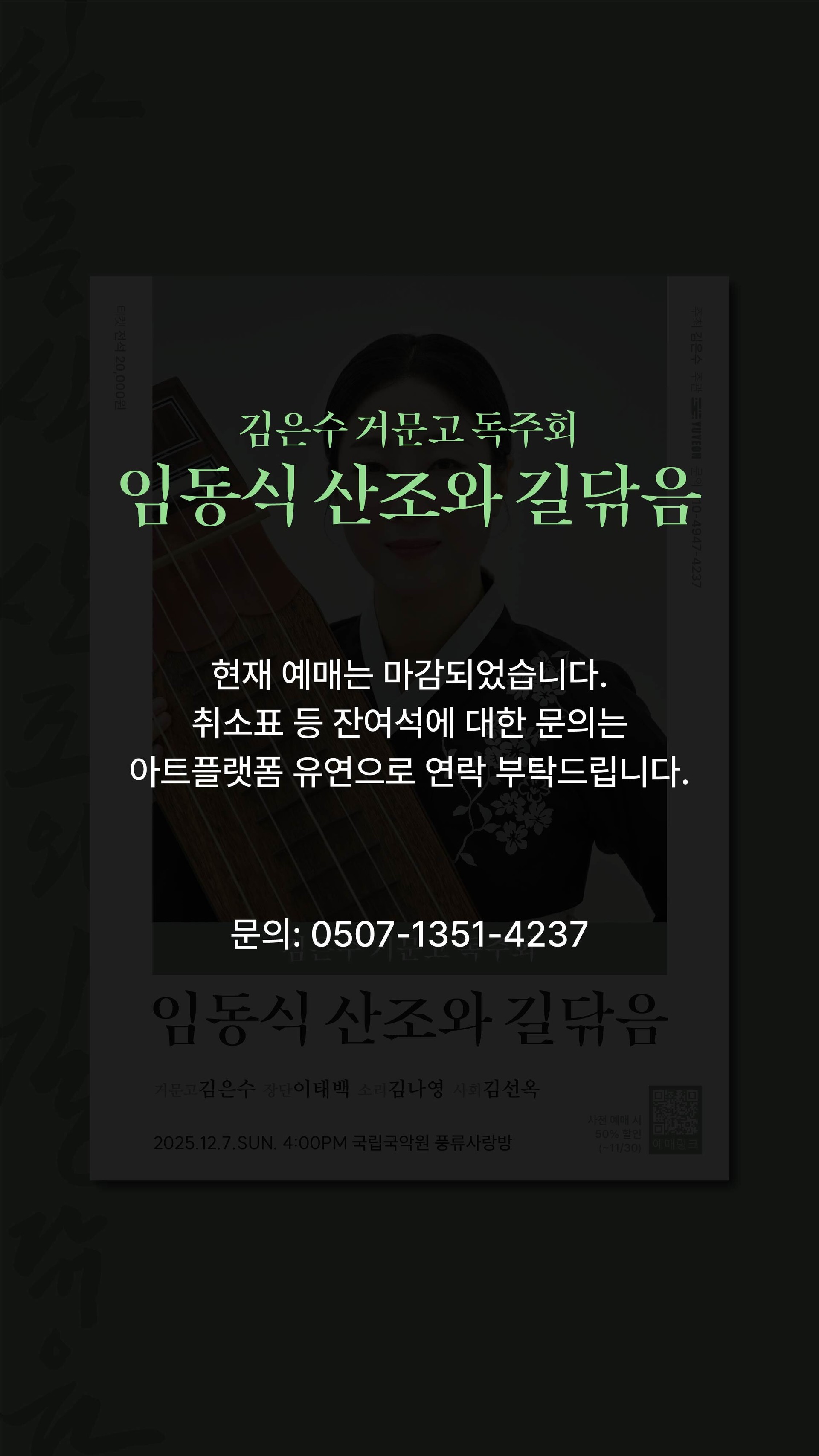 이 공연은 예약 마감되었으며, 취소표 등 잔여석에 대한 문의는